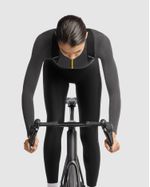 The GT SF Bib Tights S11 feature the new eco-friendly POLAR fabric, a midweight material with thermoregulating technology that stands out for its soft, brushed inner face. Made with 50% pre-consumer recycled materials, POLAR fabric is a step forward in our journey towards sustainability. However, we have thoroughly tested the fabric to ensure that sustainability is not achieved at the expense of insulation, breathability, stretch, or muscle support. The external rollBar bib straps, adapted from Racing Series models, have been updated with increased security in this GT S11 design for long rides. Their stable, clean-lined construction ensures all-day comfort. The GT S11 chamois, featuring technology inherited from the RS line, is based on the popular UMA chamois and incorporates a soft, pressure-reducing Sundeck panel. Pair these bib shorts with a GTS Spring Fall Jacket S11 or a GT Spring Fall Jersey C2, along with the GTS Spring Fall Vest S11, on cool, dry days. Add additional ASSOSOIRES for harsher weather conditions. These mid-weight insulated bib shorts are ideal for long-distance rides in the cool, dry conditions of late spring and early fall. Their soft, breathable design, featuring thermoregulating technology, is made with 50% recycled materials. FEATURED FABRICS: POLAR is a mid-weight (250 g/m²) warp-knit fabric with a soft, brushed inner face. This material creates a low-bulk design that insulates and retains heat. It's made with 50% pre-consumer recycled polyamide, reducing environmental impact without sacrificing performance.